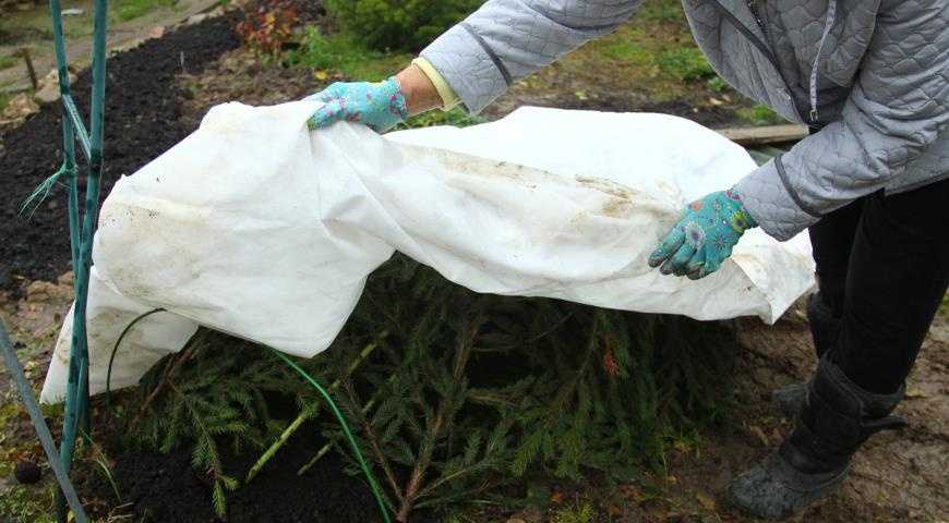 Перед наступлением похолодания нужно окопать растения компостом, землей или вызревшим навозом. При выращивании в регионах с суровыми климатическими условиями рекомендуется обвязать побеги на зимний период еловым лапником или камышовыми циновками.