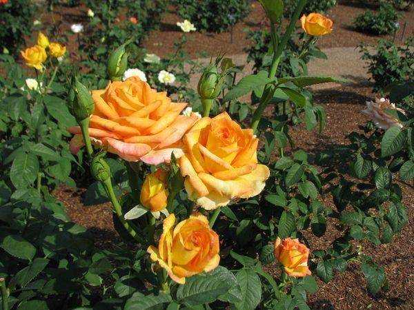 - Сфинкс Голд — высота стебля достигает до 1 метра. Цветы оранжевые с желтыми разводами, бутоны имеют средний размер, цветы подходят для среза. Отличительной особенностью, которая выделяет данный сорт, является отсутствие шипов.