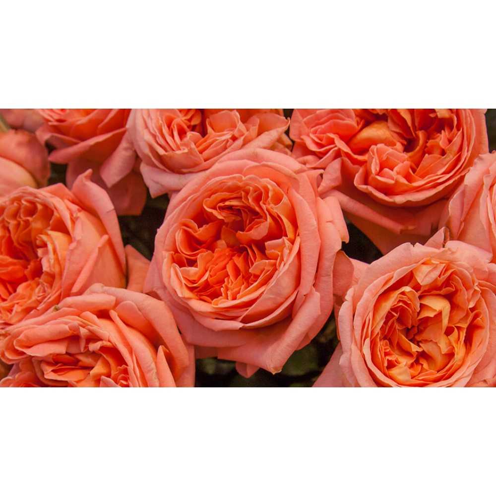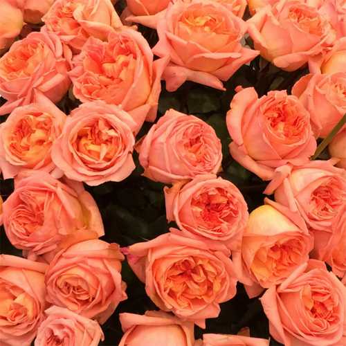 Здоровый куст, цветущий в благоприятных условиях, покрыт огромными кистями, плотно прижатыми друг к другу. Из-за обилия цветов куст немного склоняется к земле, побегов под цветами почти не видно. Розы ароматные, запах сладко-мускусный.