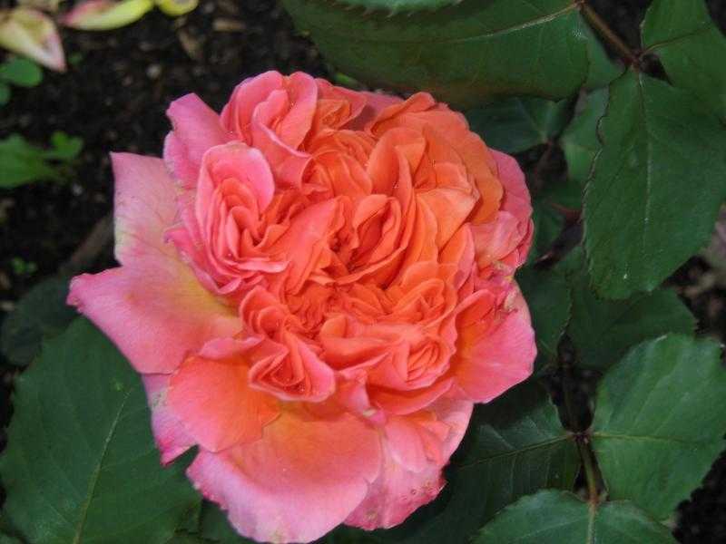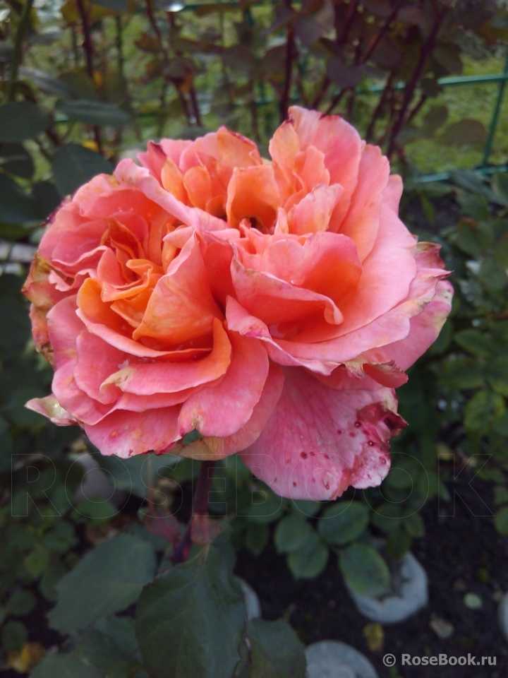 Очень необычный сияющий цвет, сначала огненно-мандариновый, позднее переходящий в лососево-алый. Аромат сильный фруктовый. Роза долго раскачивается, ей нужно время, чтобы хорошо разрастись. (Фардзинова Софья Валерьевна, Москва)