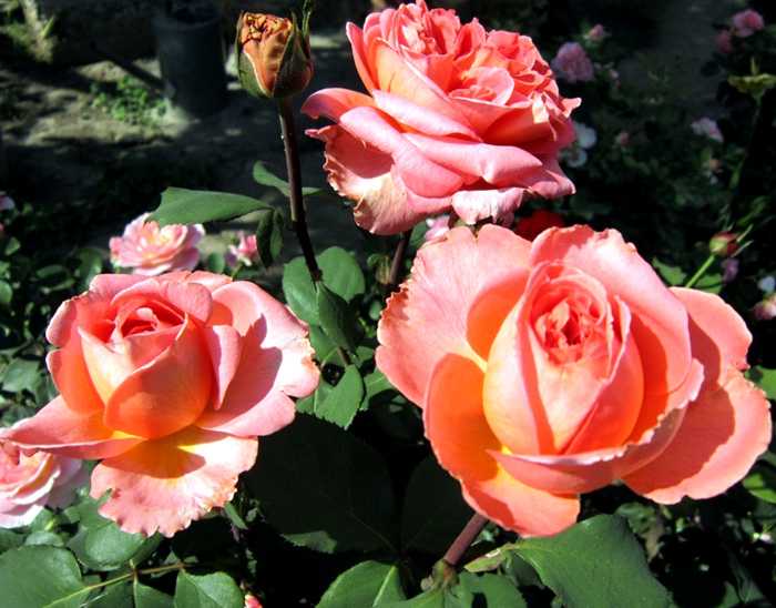- Амбианс — растение имеет крепкий иммунитет, переносит период восстановления после зимы. Бутоны крупного размера персикового цвета. Высота куста может достигать свыше 1 метра.