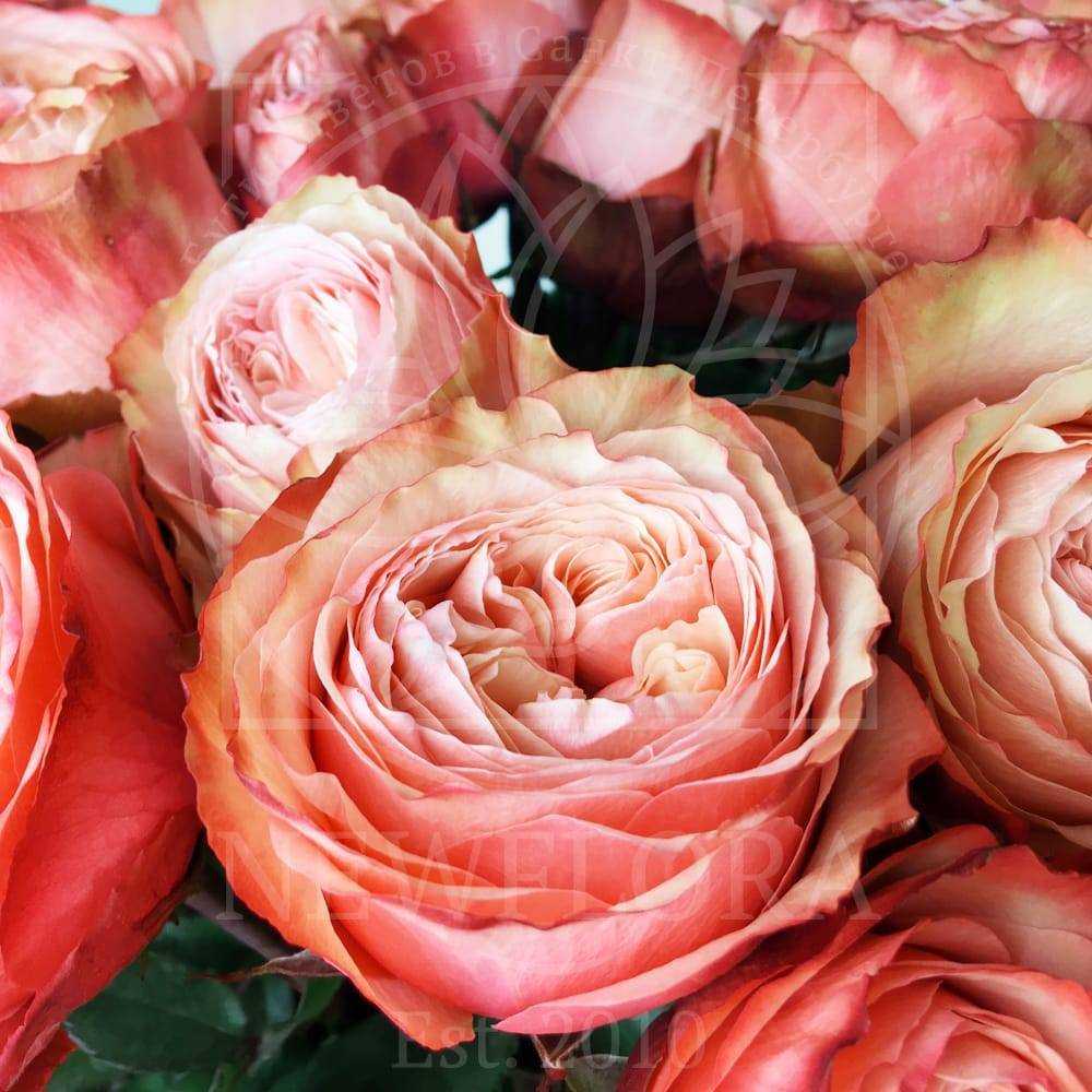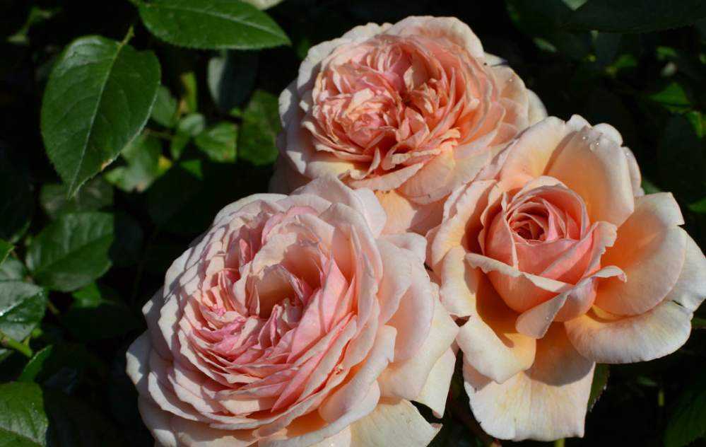 А Shropshire Lad роза имеет чашевидные цветки персиково-розового цвета, которые более бледные по краям. Цветет обильно.