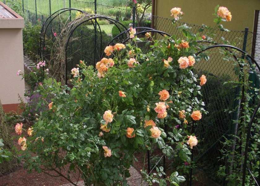 - Высота: 1.2 — 1.8 м (в форме шраба) и 3 — 4 м (в виде плетущейся по опоре розы).