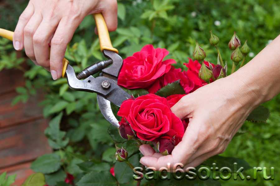 Весной после открытия роз удалите все поврежденные побеги. Летом с помощью обрезки регулируйте цветение. Необходимо обрезать увядшие цветки до первой хорошо развитой почки и удалить слепые (без бутонов) побеги, оставляя по 2–3 хорошо развитых пятилистника на каждом.