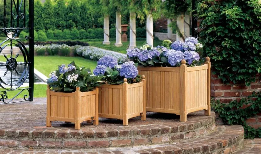 Деревянные вазоны с гортензиямиИсточник dekoriko.ru