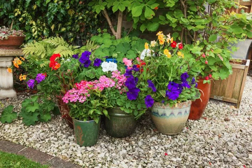 Горшки с цветами расставляют вдоль бордюров, у входа в дом, возле калитки. Благодаря такому подходу создаются оригинальные клумбы, которые легко обновляются в зависимости от ситуации. Например, вазоны легко переместить при необходимости освободить место под парковку или проведения семейного торжества.