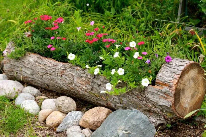 Рутарий (композиция в стволе дерева или пне). Если рядом с домом имеется пень или поваленное дерево, это вариант для превращения в живописную эко-клумбу.