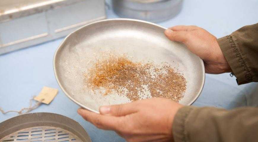 Затем через мелкое сито отсейте пыль. Когда у вас останется фракция с мусором, соразмерным семенам, их можно отделить несколькими способами.