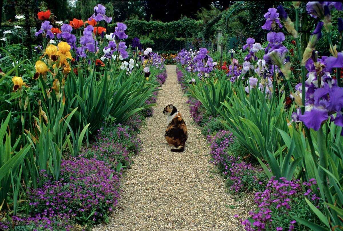 Такая дорожка становится главным украшением любого участка или парка. Высокие цветы в сочетании с низкорослыми растениями смотрятся стильно и красиво. Именно голландские ирисы лучше всего подходят для деления участка на зоны или оформления пешеходных дорожек.