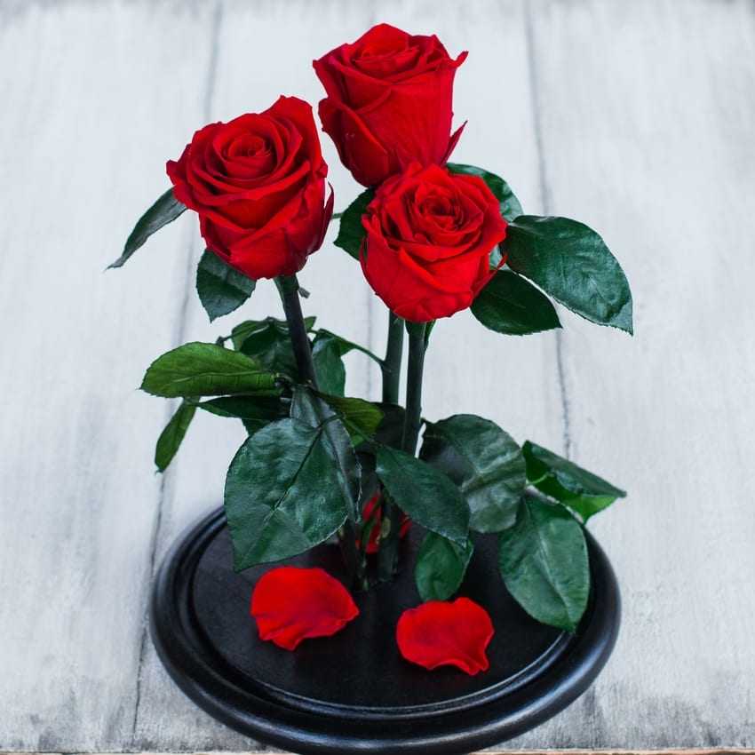 - Прошедший стабилизацию бутон соединяют со стеблем и крепят к деревянной подставке, накрывая прозрачным колпаком из прочного стекла с толстыми стенками.