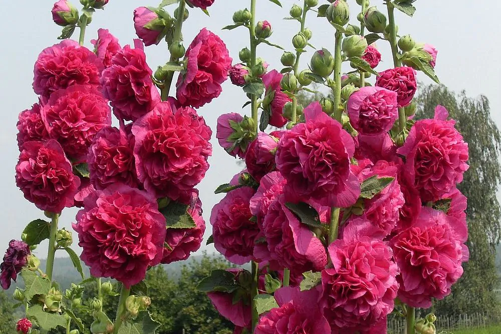 Высота некоторых видов достигает 2,8 м. Цветы бывают простыми и махровыми. Самые любимые разновидности розового просвирника: