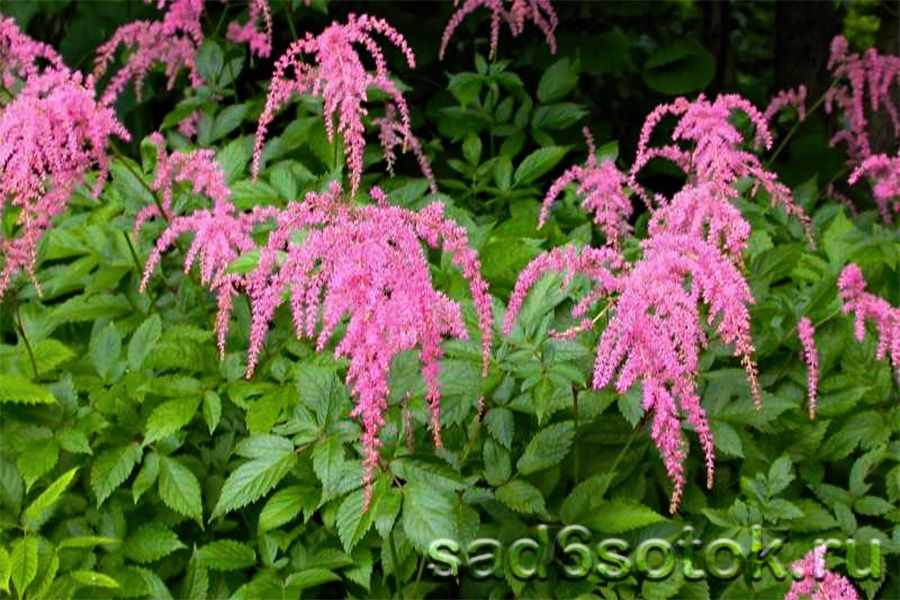 - Astilbe chinensis «Vision in Pink» украшают растение цветы розовых тонов;