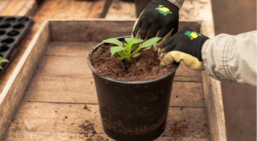 Почва должна быть питательной, влаго- и воздухопроницаемой, с нейтральной реакцией. Можно использовать готовую смесь для контейнерных цветущих растений (или садовой земляники) или подготовить ее самостоятельно. Во втором случае смешивают дерновую землю, перегной и песок в соотношении 2:2:1. Можно добавить перлит или гидрогель, способствующие улучшению воздушно-водного баланса. Не забудьте об обязательном дренажном слое на дне из керамзита, гальки, битого кирпича или других доступных вам материалов. Иначе корневая система может загнить от избытка влаги.