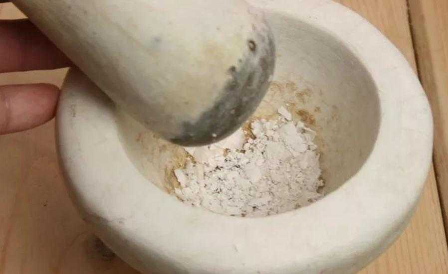 - очищенную скорлупу перетирают в тонкодисперсный порошок.
