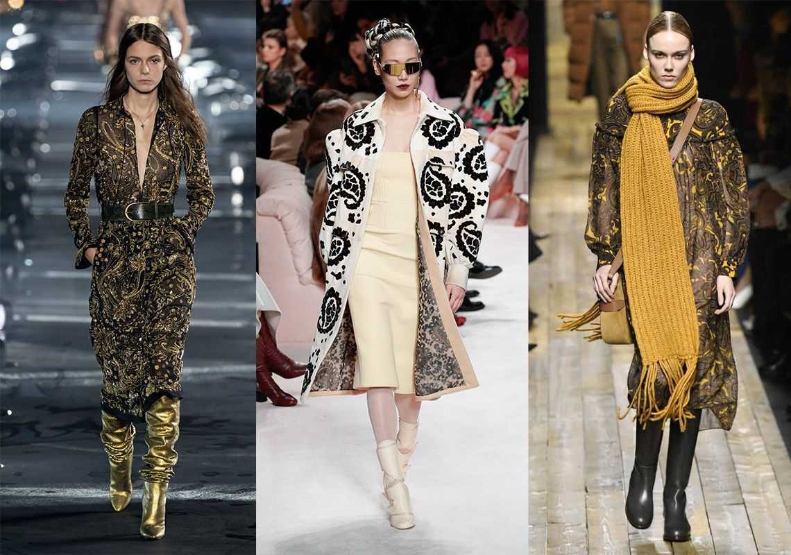 Принт пейсли на шоу Saint Laurent, Fendi и Michael Kors (слева направо)
