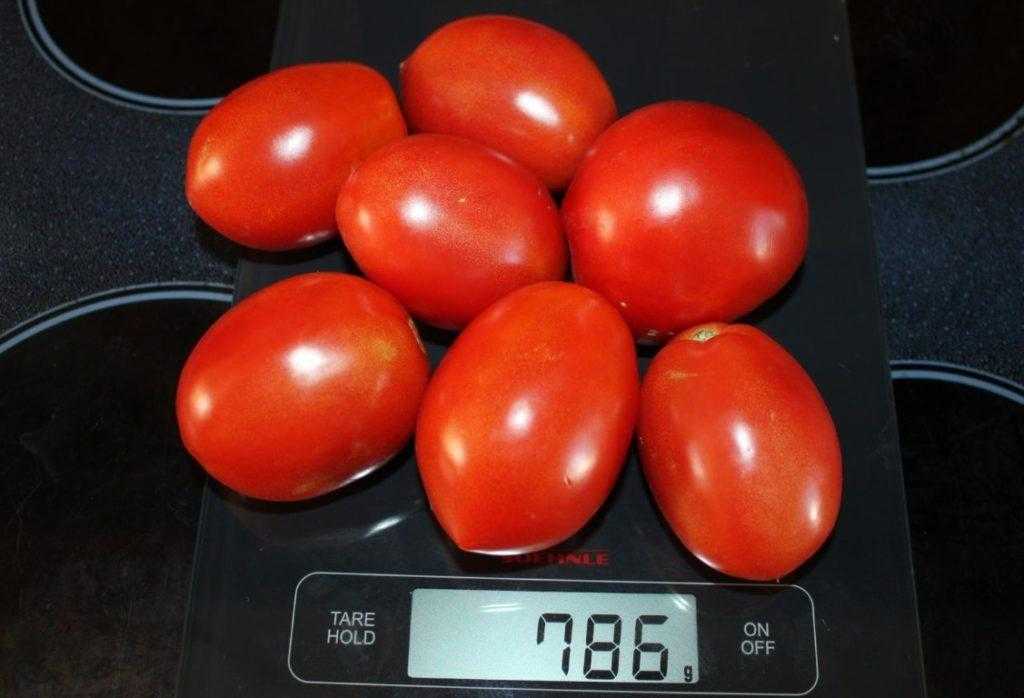 Плоды напоминают форму цилиндра, сами помидоры сочные и крупные. Оттенок плодов этого сорта – контрастный красный, ярко выделяющийся на фоне общей зелени листьев. Масса уже спелых помидоров варьируется от 105 до 400 г.