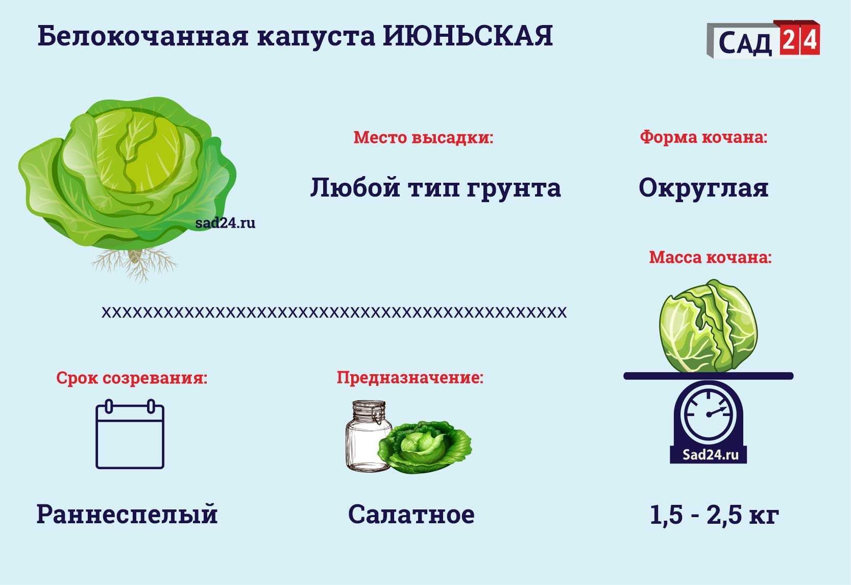 Таблица: сортовые характеристики капусты Июньская