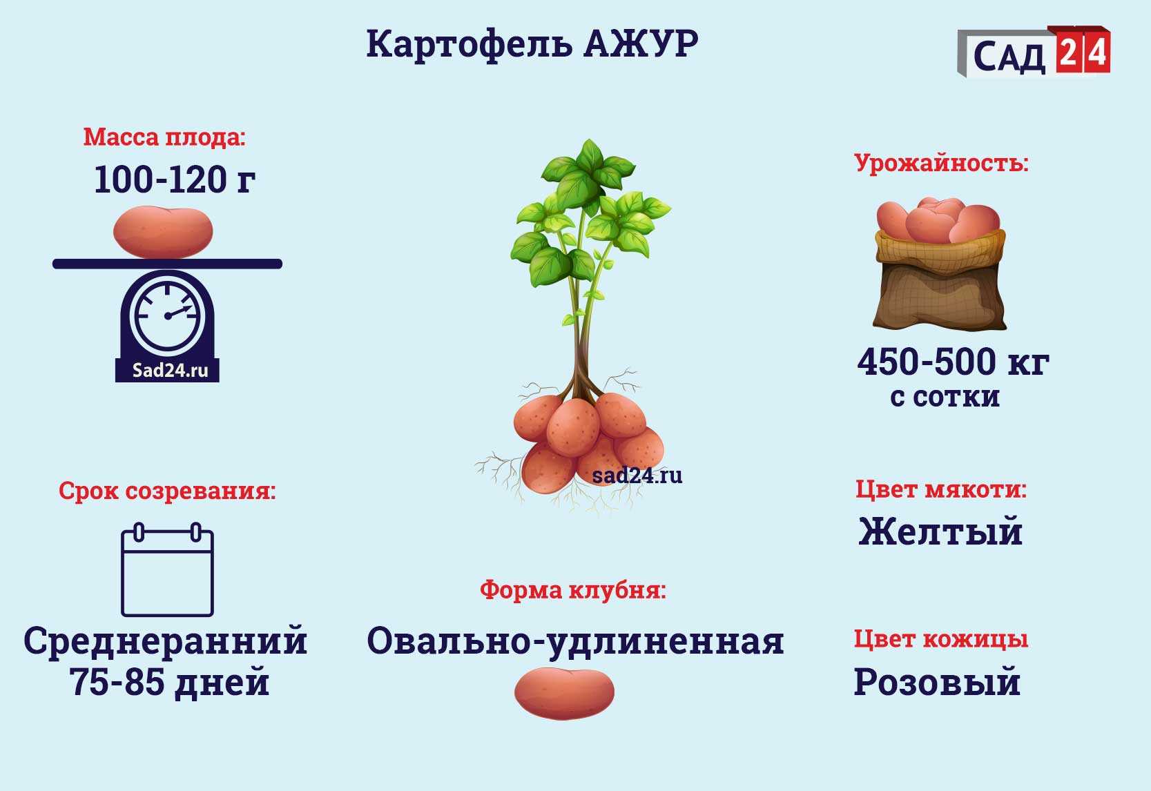 Картофель сорта «Ажур» обладает следующими достоинствами: