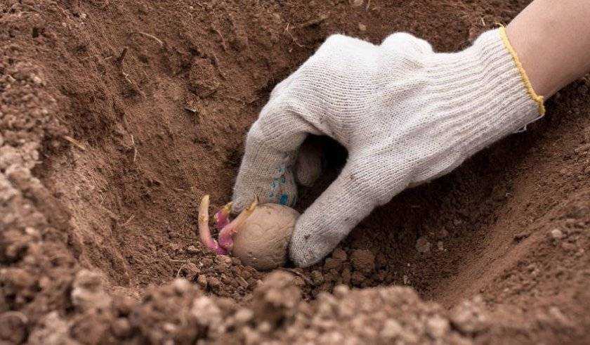 - Размещение в лунках семенного материала так, чтобы каждый клубень находился на некотором удалении от своего соседа.