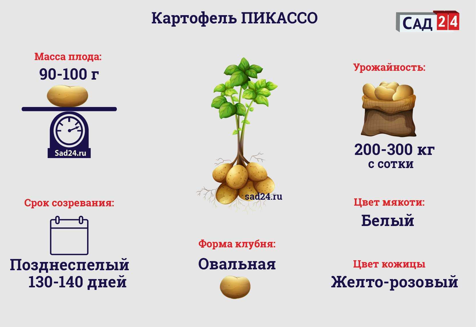 Пикассо — столовый картофель. Из-за небольшого содержания крахмала клубни хорошо сохраняют целостность при термообработке и подходят для приготовления любых блюд.