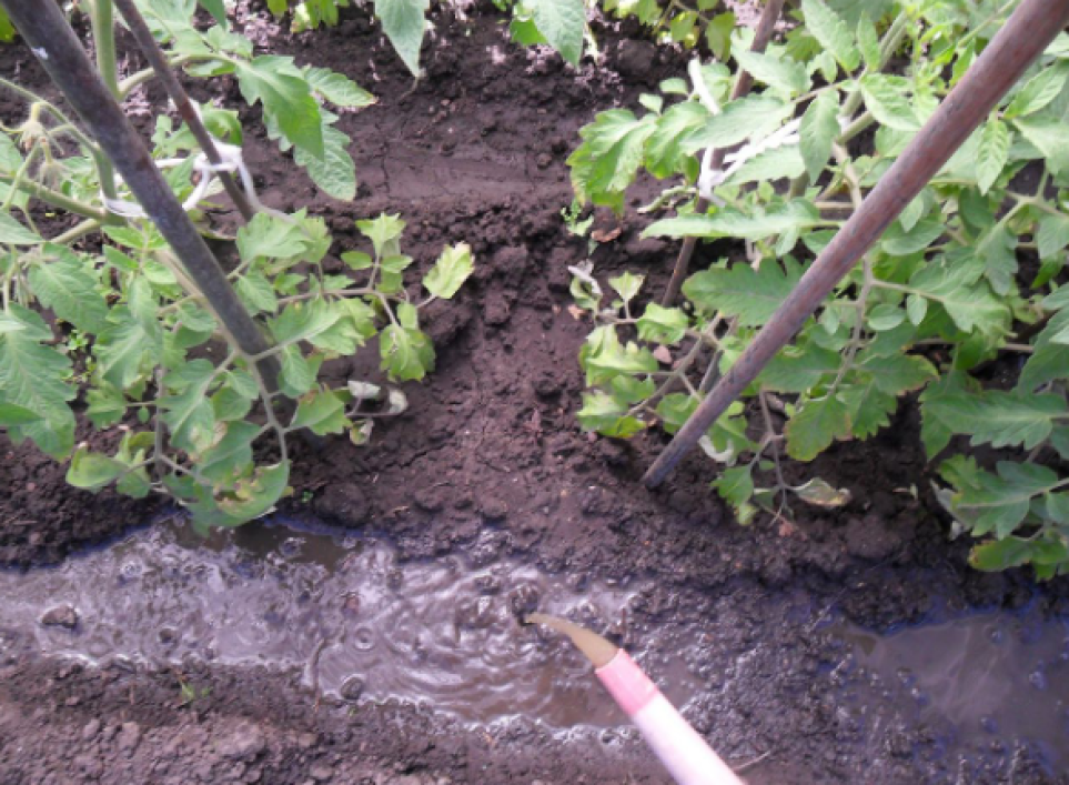 - Полив в период вегетации – накануне полить помидоры простой водой. Затем, развести заготовленный раствор из расчета 1 к 20. Под один куст – 0, 5 литра. Осадок не используется.