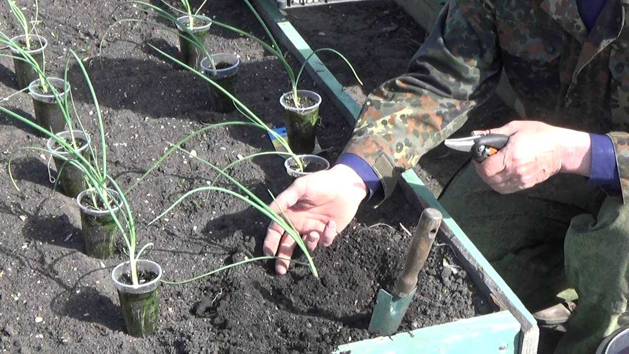 - За 7 суток до высадки рассады лука Эксибишен в открытый грунт следует подстричь сеянцы (то есть прищипнуть). Прищипывание необходимо для сохранения баланса между корневой системой и надземной массой, благодаря чему рассада быстрее и успешнее приживется на новом месте. Кончики лука подрезаются таким образом, чтобы остались стебли высотой 10 см.