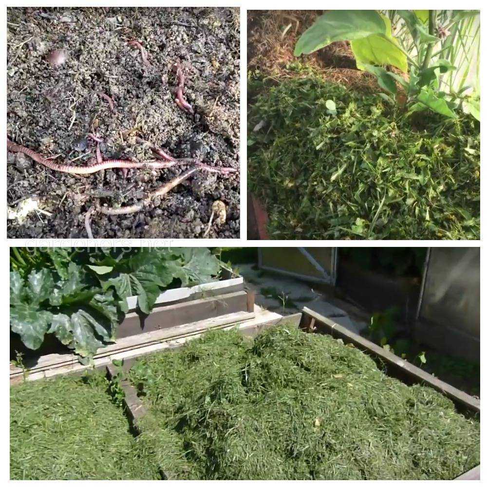 - Активно размножаются почвенные микроорганизмы и черви. Это происходит благодаря тому, что на грядке с горячей травой проходят те же процессы, что и в компостной куче. Почвенные жители перерабатывают растительные остатки, превращая элементы и соединения в доступную для выращиваемых культур форму. При этом повышается качество земли.