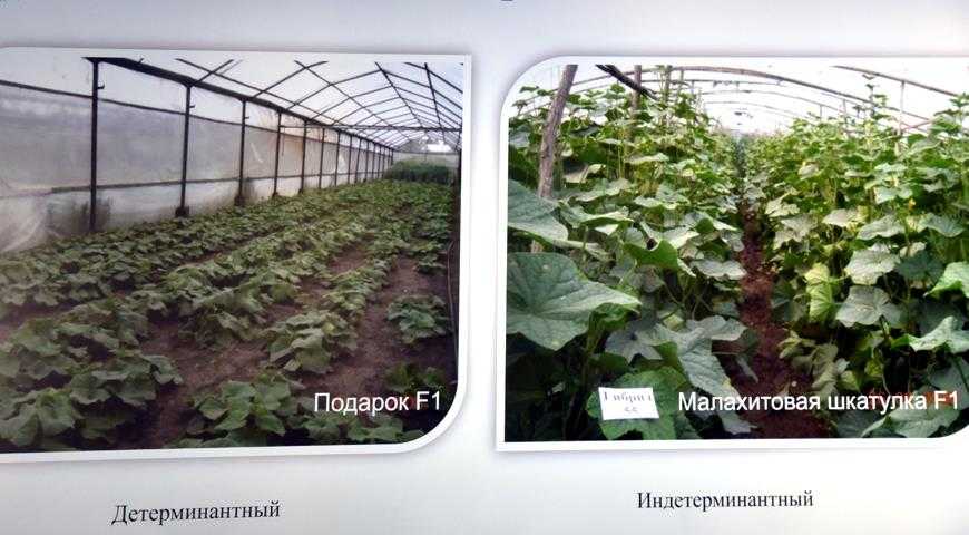 т.е. растения с ограниченным и неограниченным ростом, проще говоря небольшие кустовые огурцы для открытого грунта и выращивания в расстил — это детерминантные; высокие, тепличные — это индетерминантные.