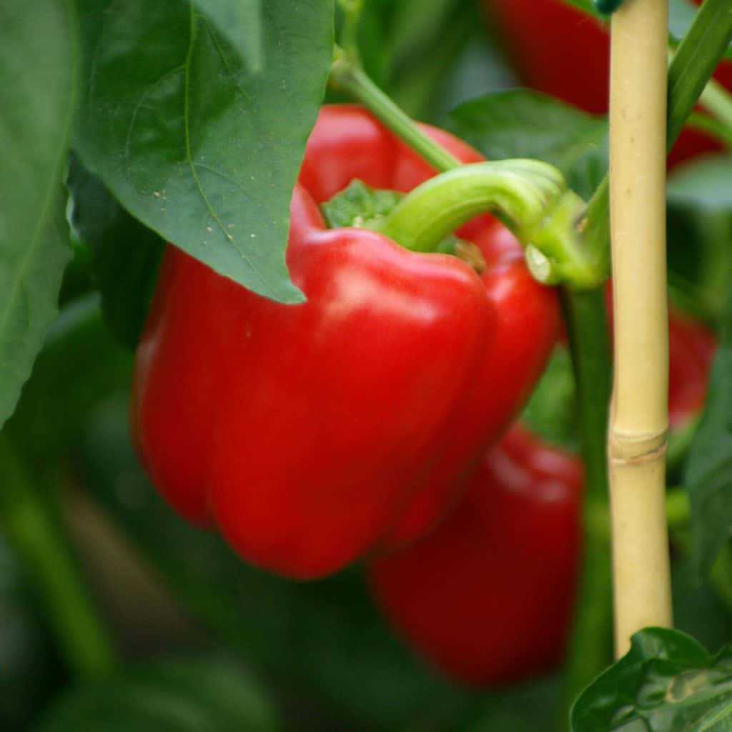 Помидоры и перец предъявляют к влажностному и температурному режимам в теплице достаточно схожие требования. К тому же перцы, как и томаты, нуждаются в подвязке. Так что им вполне подойдет общая шпалера – на высоте около 2 м натяните проволоку.