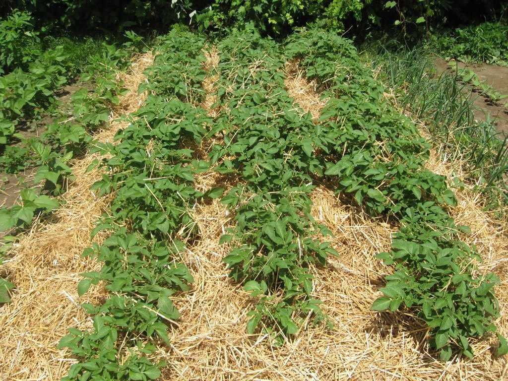 Если все сделано правильно, создаются оптимальные условия: сорняки не могут пробиться сквозь слой соломы или сена, исключается испарение. Это позволяет клубням расти в оптимальных условиях.