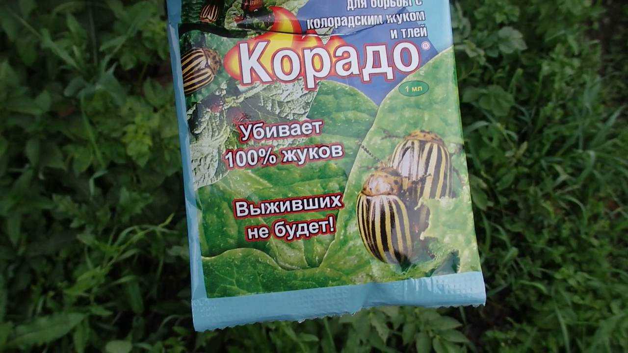 От колорадского жука защищают средства: Корадо, Регент, Актара, Командор, Престиж, Танрек, Апачи, Табу, Молния.