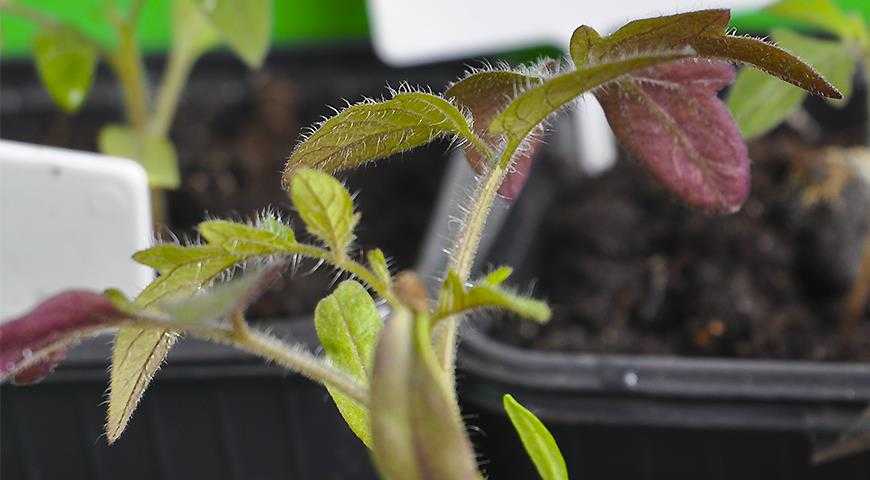 Фиолетовый оттенок листьев у молодых томатиков сигнализирует о том, что рассаде помидоров холодно. Опасность холодного содержания не только в «посинении», т.е. приобретении фиолетового оттенка у томатов, но, и как итог, в задержаке развития и общее ослабление рассады. Что может привести к снижению урожайности томатов.