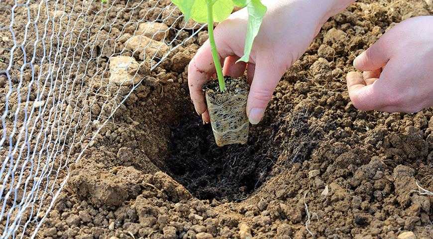 Посадка в грунт стандартная. Для вьющихся сортов еще до высадки желательно предусмотреть опоры.