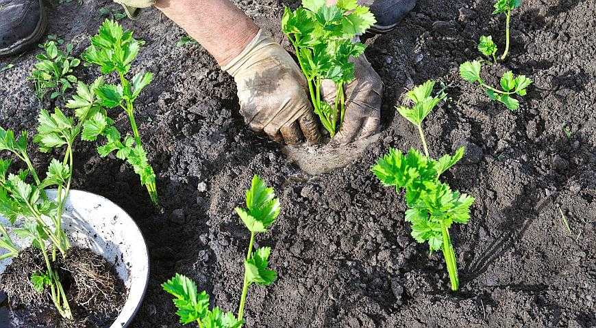 Сельдерей на постоянное место переносить можно после того, как исчезнет угроза сильных возвратных заморозков, почва прогреется до +6 °С и больше, раньше основных «рассадных» овощей. Обычно пересадку корневого сельдерея в почву начинают уже с первой декады мая, ориентируясь на погоду, но наиболее надежные сроки — середина и конец мая. Из-за влаголюбивости и чувствительности к жаре затягивать пересадку до июня не стоит, стараясь ограничить период посадки максимум 20-25 мая.