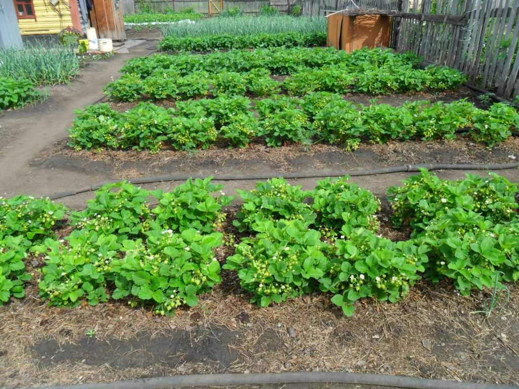 - Весной после срезания сухих листьев клубничных гряды обильно поливают.