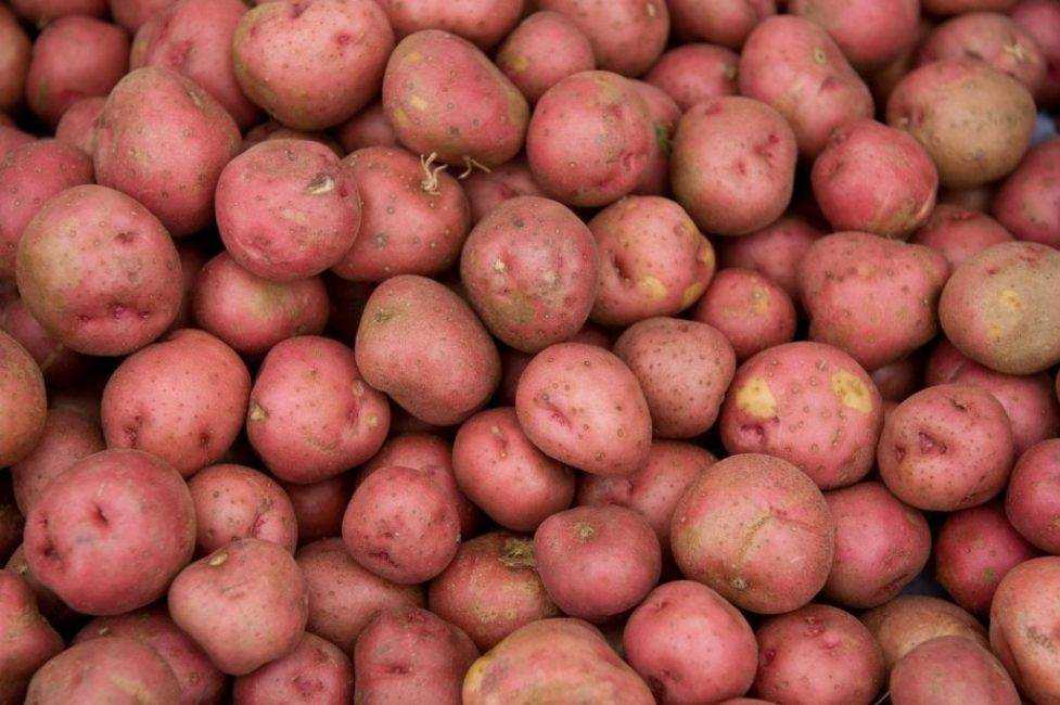 Картофель с красной кожурой. На срезе – белый. Очень много глазков.