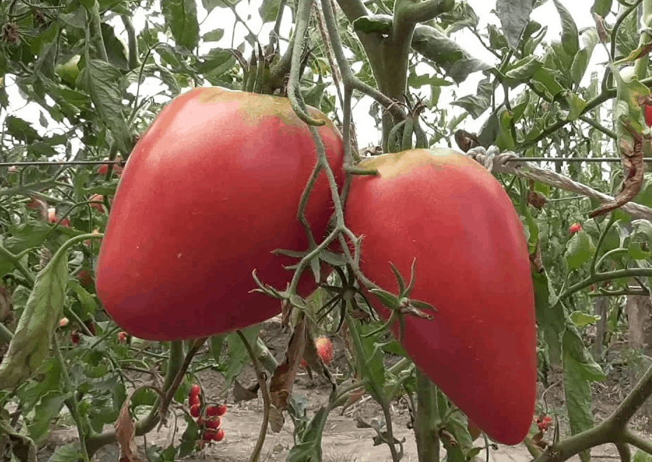 Помидоры имеют округлую форму, слегка ребристые. Плоды созревают одновременно на одной ветке. Они мясистые, но в то же время плотные. Они отличаются насыщенным красным цветом.
