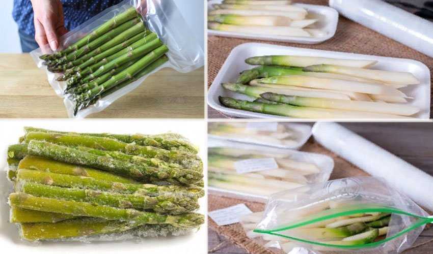 По возможности овощ следует есть как можно быстрее – со временем он теряет вкусовые и полезные качества. Срок хранения спаржи в холодильнике – от 2 до 4 дней. Чтобы продлить эти сроки, стебли помещают в емкость, наполненную водой на 5 см и накрывают сверху целлофаном, создавая парниковый эффект. Воду нужно менять каждый день. Для хранения на короткий период достаточно завернуть во влажное полотенце.