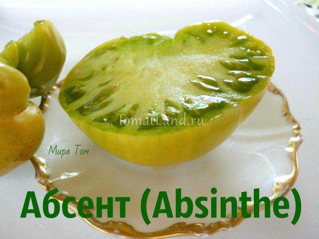 Оригинальное название сорта — Absinthe, страна происхождения — США. Разработан Аланом Бишопом на основе скрещивания Emeraude, Aunt Ruby&8217; s German Green и Brandywine в середине 2000-х годов.  Отличный помидор для любителей зеленых сортов, со сладким и слегка пряным вкусом.  Среднеспелый, индетер…