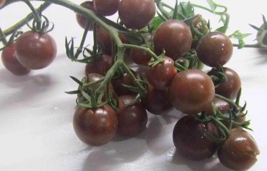 Описание плодов соответствует их названию – это темные помидорчики, будто загорелые до черноты. В недозрелом виде они имеют насыщенный зеленый цвет.
