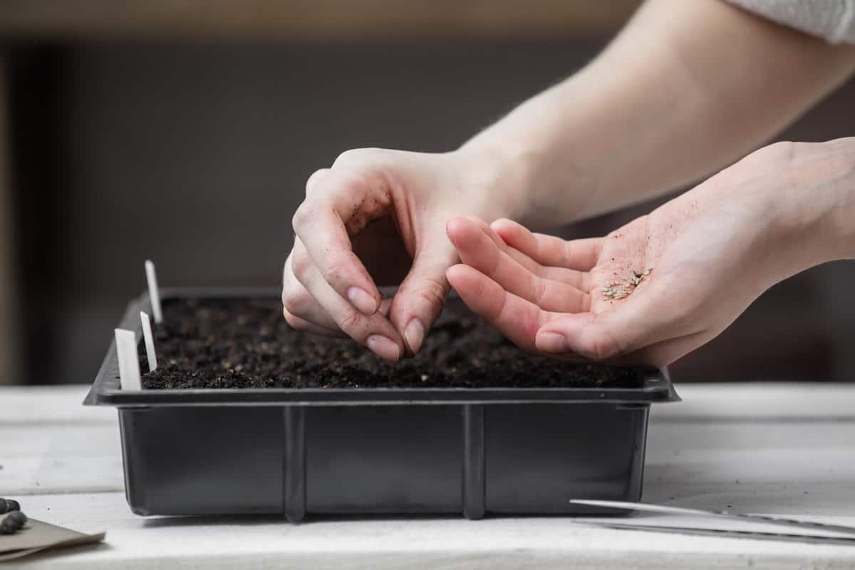 Затем контейнеры накрывают полиэтиленом, чтобы создать внутри эффект парника, и помещают в теплое темное место до появления всходов. Обычно всходы появляются на 5-7 день после посева семенного материала.