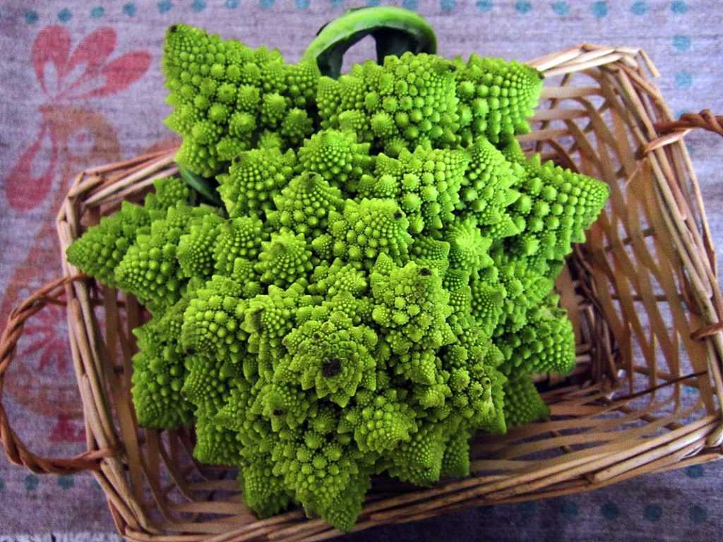 Капуста Романеско — это экзотичная разновидность капусты. Ее отличительная особенность — это насыщенный зеленый цвет соцветий в виде фрактальной спирали. Напоминает коралл, поэтому ее другое название — коралловая. Еще одной особенностью является количество витков в соцветии, равное числу Фибоначчи.