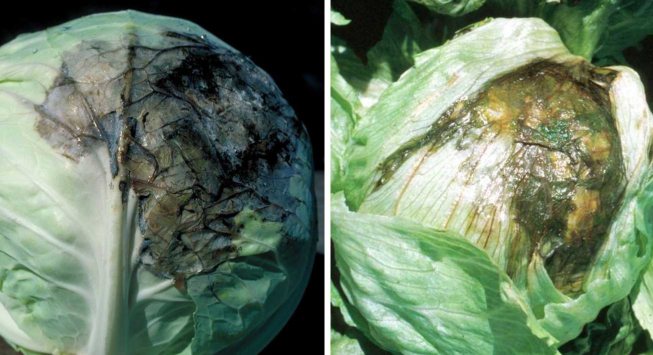 Причина появления белой гнили – гриб Whetzelinia sclerotiorum, серой – Botrytis cinerea. Оба заболевания чаще развиваются при нарушении хранения, когда закладывают перезревшие и поврежденные кочаны. Основное отличие в цвете загнивших листьев, при белой гнили появляется ватообразный светлый налет, который постепенно проходит внутрь кочана. При серой – на поверхности появляются коричневатые листья, которые истончаются и усыхают.