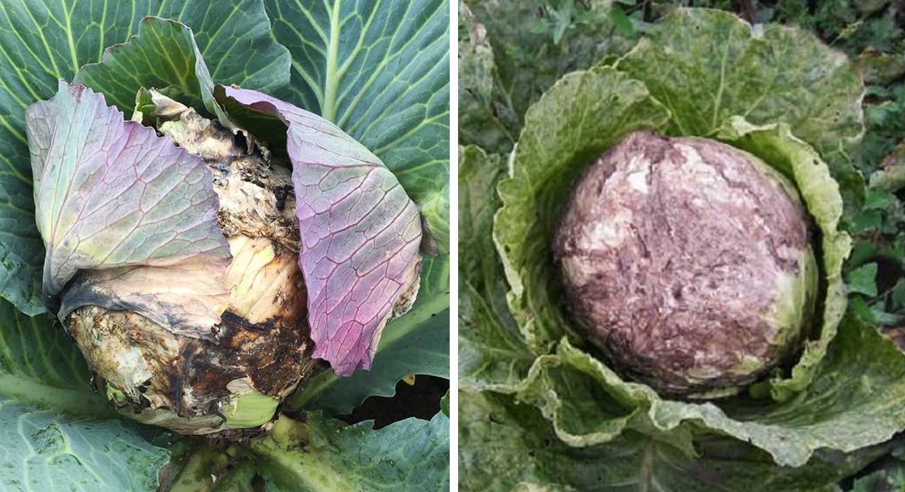 В дождливое лето кочан может отгнить от кочерыжки, при этом от капусты идет неприятный, гнилостный запах. Использовать антибактериальные препараты заранее не целесообразно, пораженный кочан все равно сгниет.