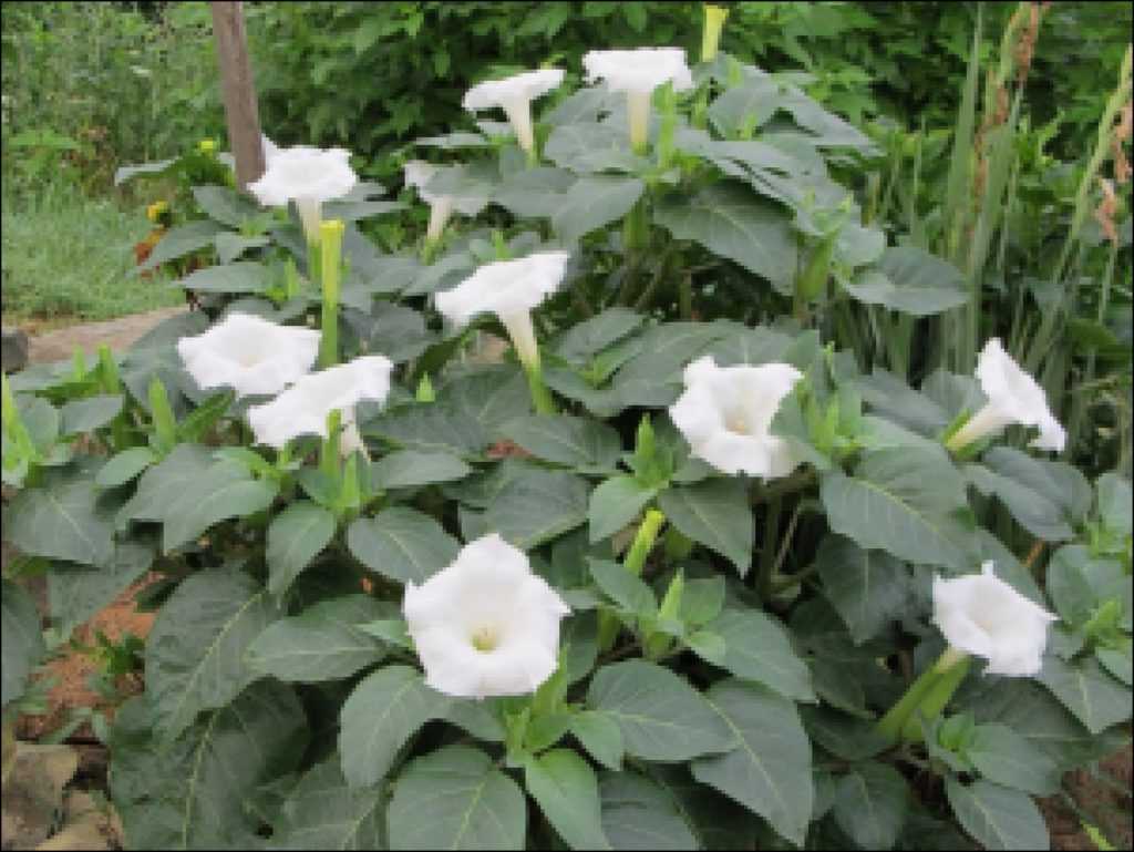 - Дурман. Свежую (1 кг) или сухую (100 г) зелень заливают литром воды, кипятят 2–3 часа. Перед употреблением разводят ещё 10 л воды.