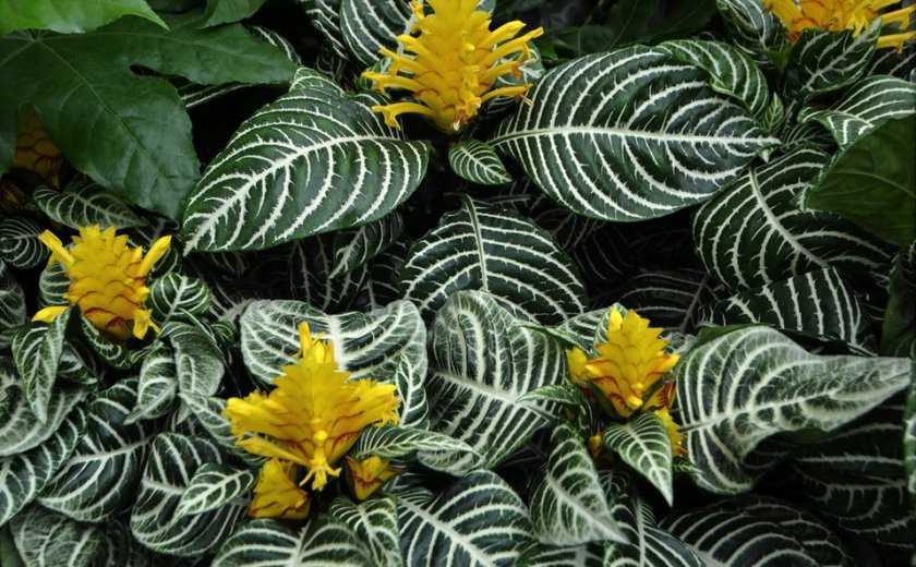 Цветок «Афеландра» является небольшим кустом, который в высоту обычно достигает полуметра. Его листья очень большие и в длину достигают 30 сантиметров, они обладают овальной или эллиптической формой с заостренными концами и насыщенным зеленым цветом с белыми полосками, из-за которых в народе цветок прозвали «зеброй».
