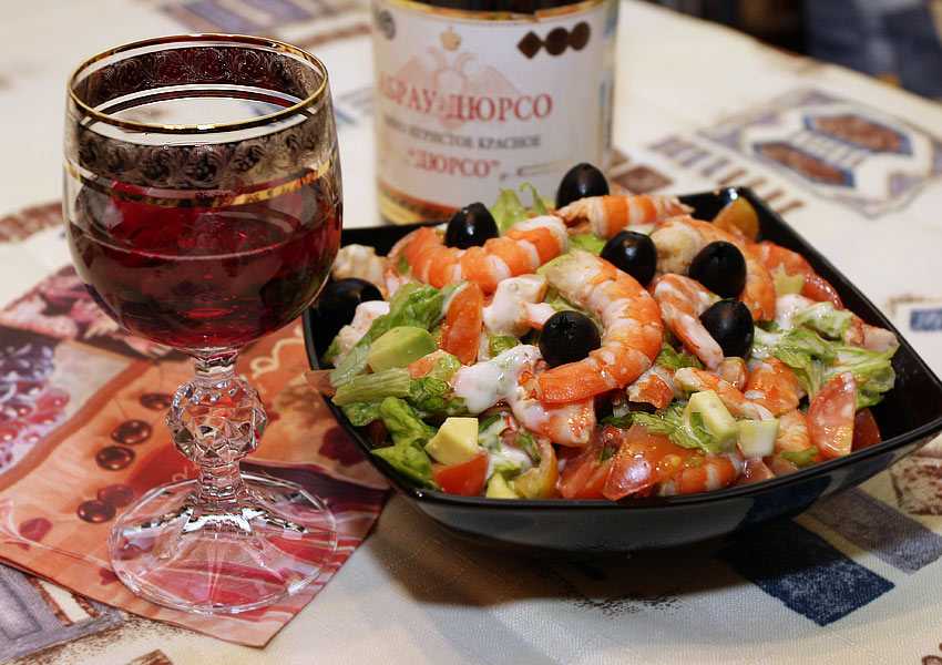 Простой креветочный салат с авокадо.