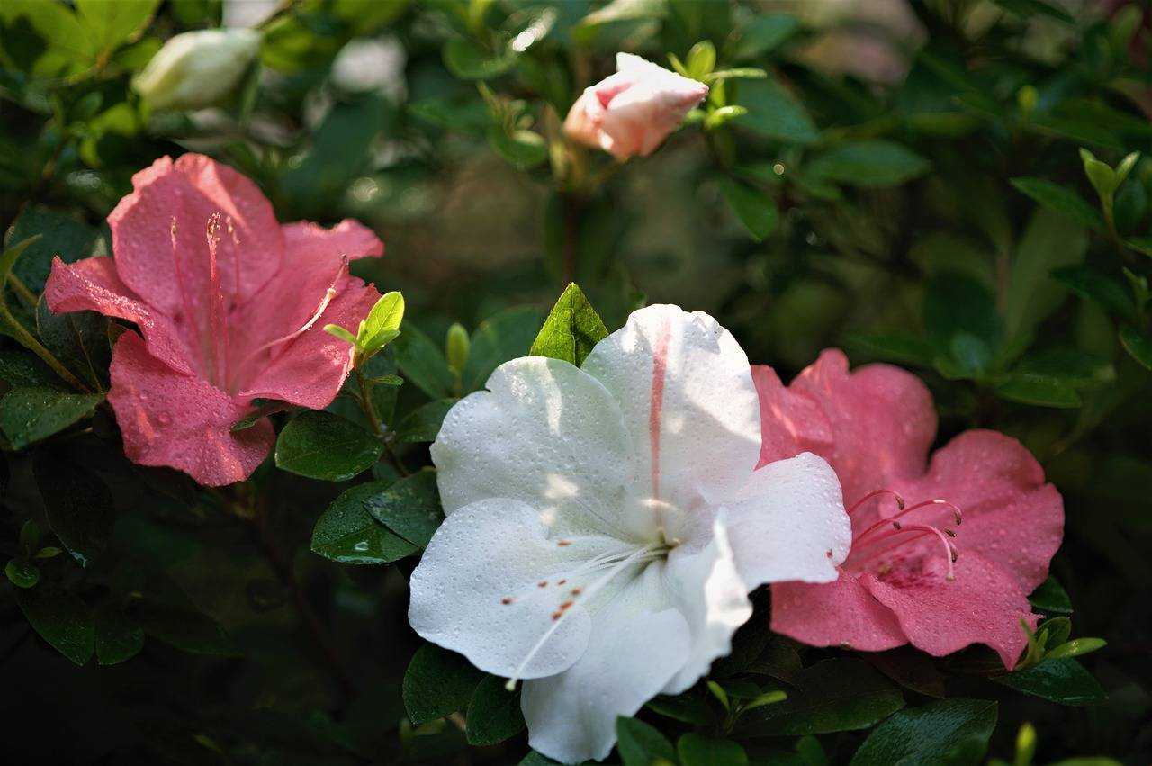 - Оттенки соцветий японской азалии также могут быть разнообразны: от демократичного белого цвета до яркого красного или розового, можно также встретить пеструю цветовую палитру и двухцветные цветы азалии.