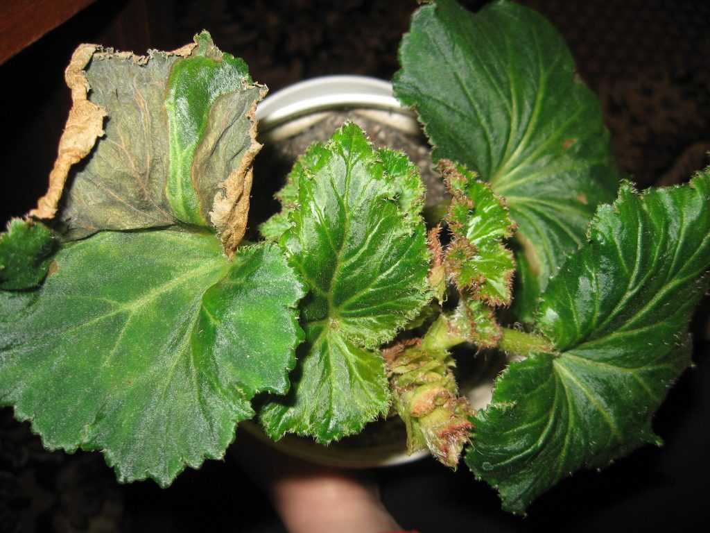 Причина: содержание бегонии в холодном помещении при температуре ниже комфортной.