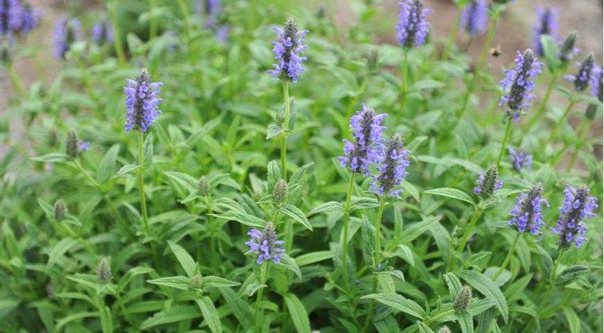 Стебли крепкие 60-100 см высотой, прямые, опушенные. Листья ароматные, крупные, около 15 см длиной, продолговато-ланцетные, по краям зубчатые или пильчатые. Соцветия очень крупные, рыхлые, венчики фиолетовые и темно-лавандовые. Обильно цветет в июне-июле. Сорта: Summer Magic, Dawn to Dusk.